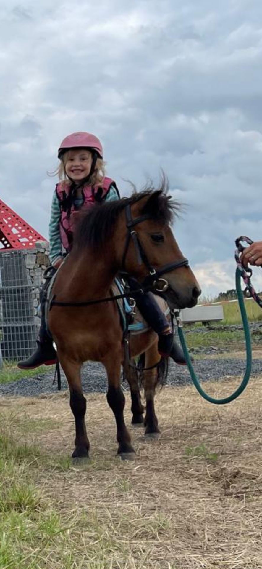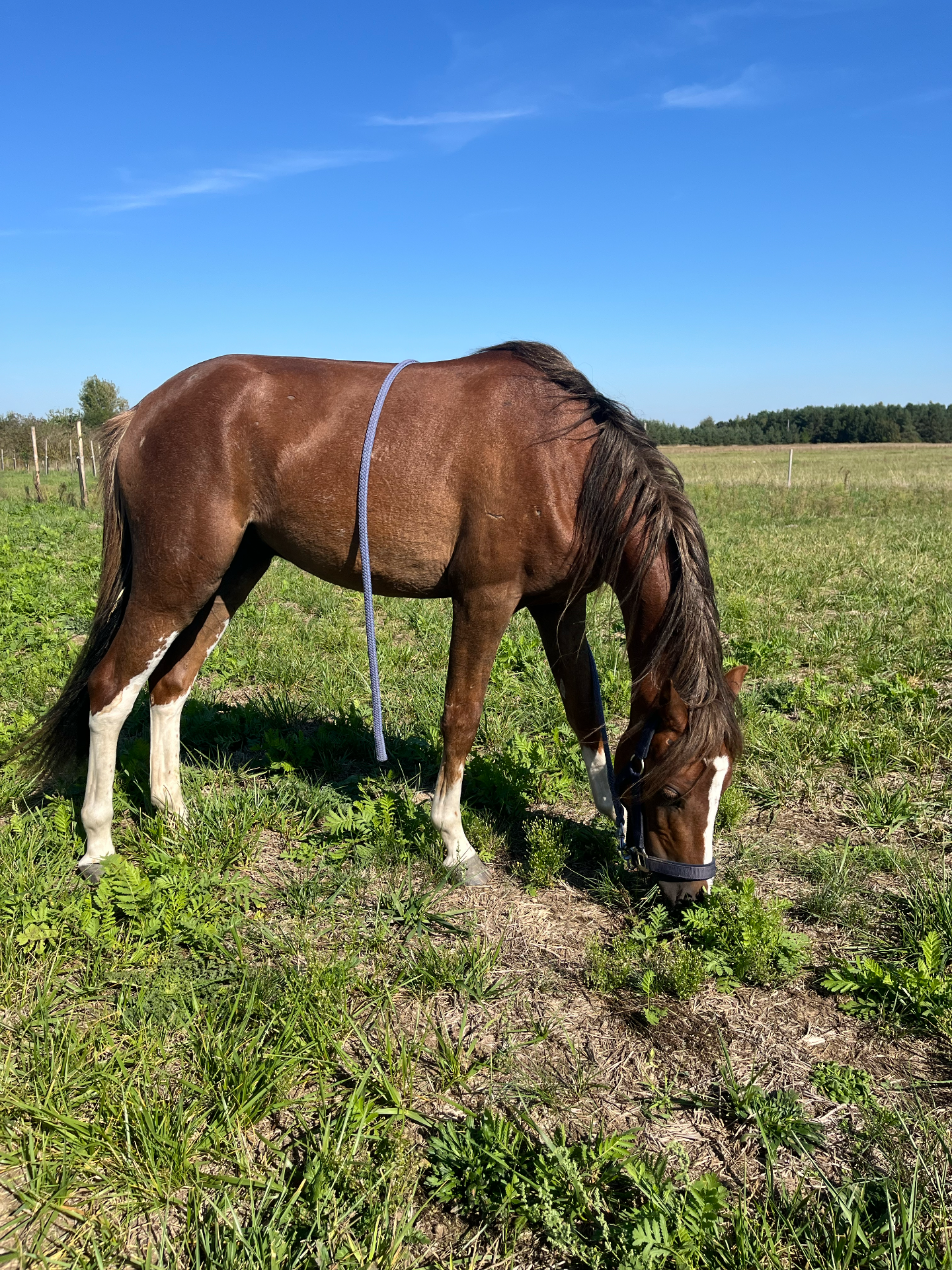 Malina se narodila v roce 2016 a s námi je od svých 3 let. Slouží jako pony pro naše nejmenší a tahá vozík s Nikolkou.